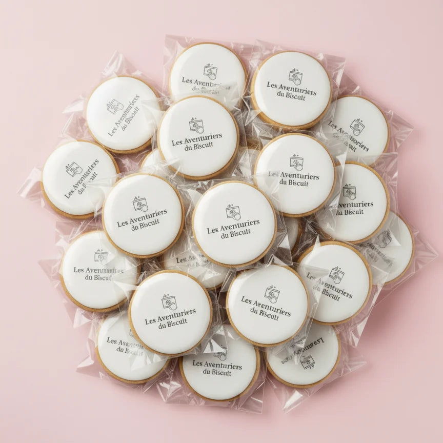Faites briller votre marque avec notre Pack de 100 biscuits ronds personnalisables (5 cm). Idéal pour vos événements, clients ou équipes, chaque biscuit devient un support unique pour votre logo ou message.