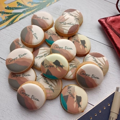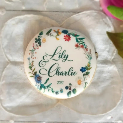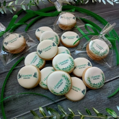 Fabriqué et décoré à la main dans notre atelier de Sèvres, ce sablé pur beurre met parfaitement en valeur un message, un prénom ou un logo. Son format rond, doux et intemporel, en fait un grand classique de la personnalisation.